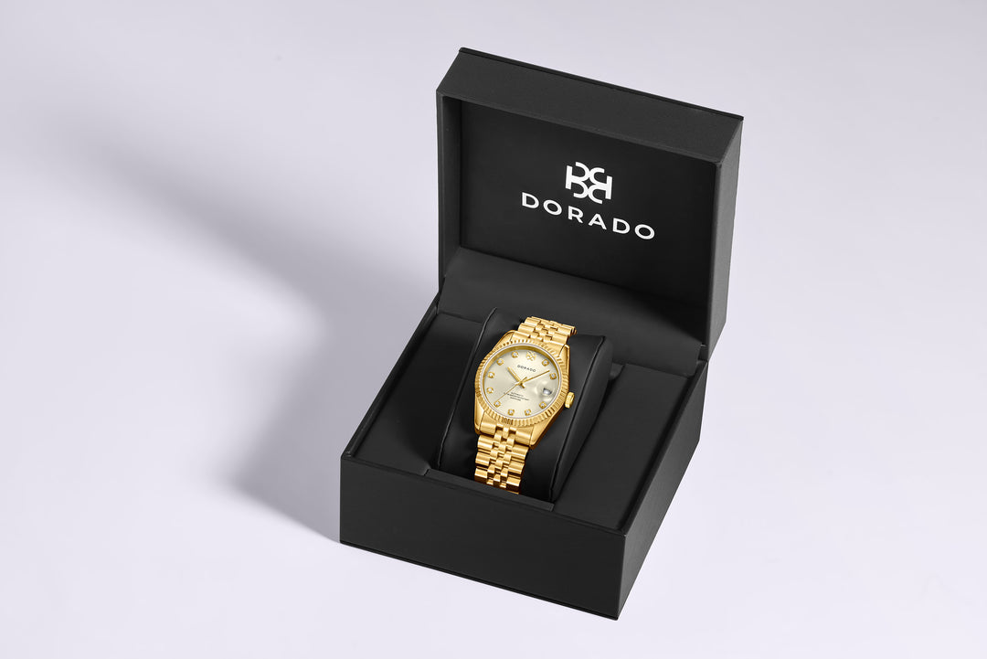 Experience timeless sophistication with DORADO's Two Tone Timeless Watch. Crafted with exquisite precision, this automatic watch embodies a seamless blend of artistry and engineering. It stands not just as a timepiece but as a masterpiece of craftsmanship, exuding style and refinement.