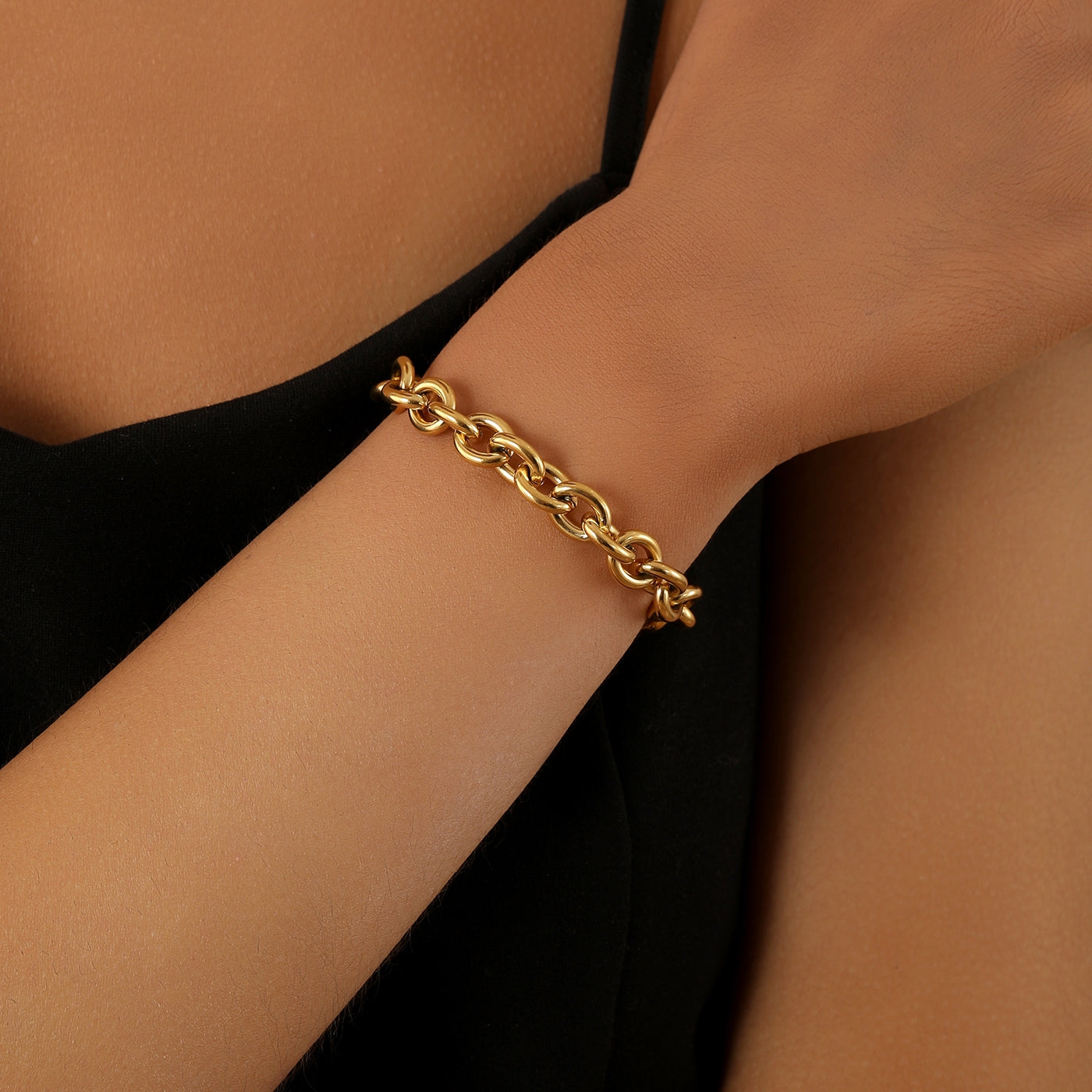 The Chunky Rolo Chain Bracelet commands presence with bold interlocking oval links that showcase unapologetic strength and contemporary edge.