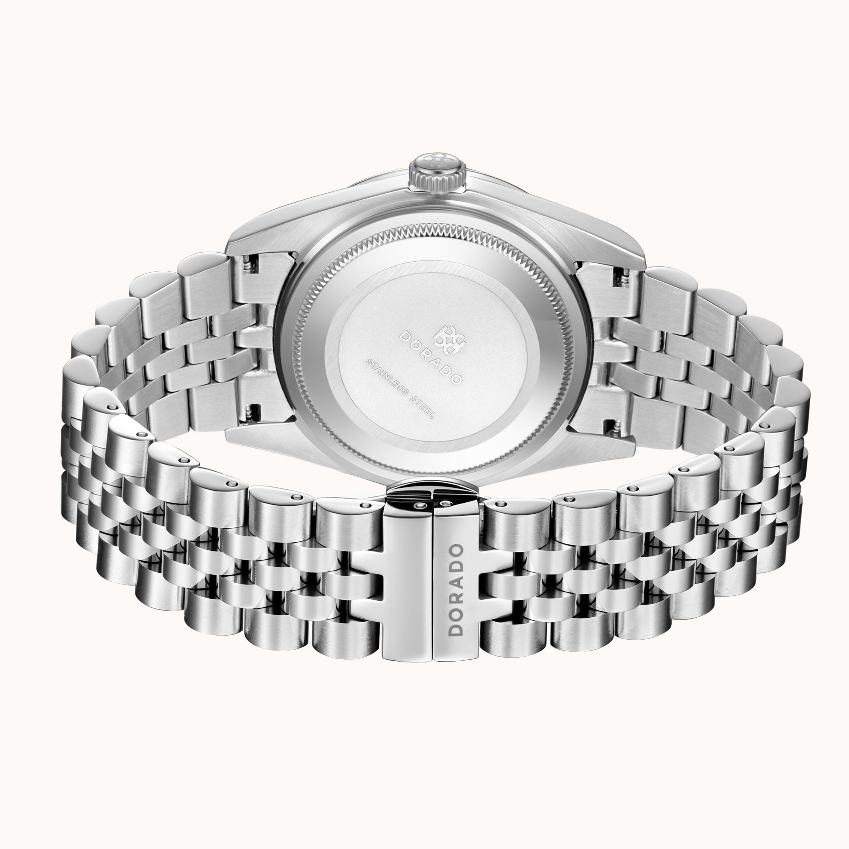 Experience timeless sophistication with DORADO's Silver Timeless Watch. Crafted with exquisite precision, this automatic watch embodies a seamless blend of artistry and engineering. It stands not just as a timepiece but as a masterpiece of craftsmanship, exuding style and refinement.