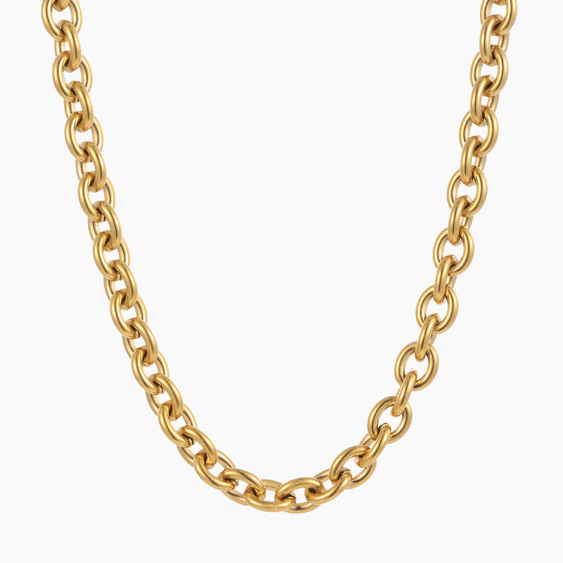 Start your collection with a gold Chunky Rolo Chain Necklace. This necklace is the perfect addition to any outfit and you can wear it every single day. Add this staple to your collection today.