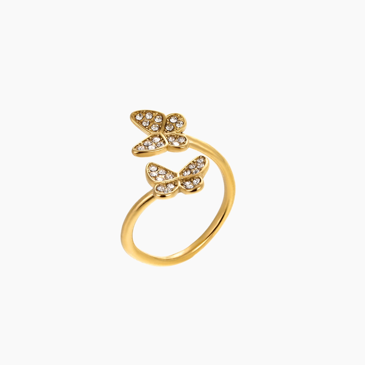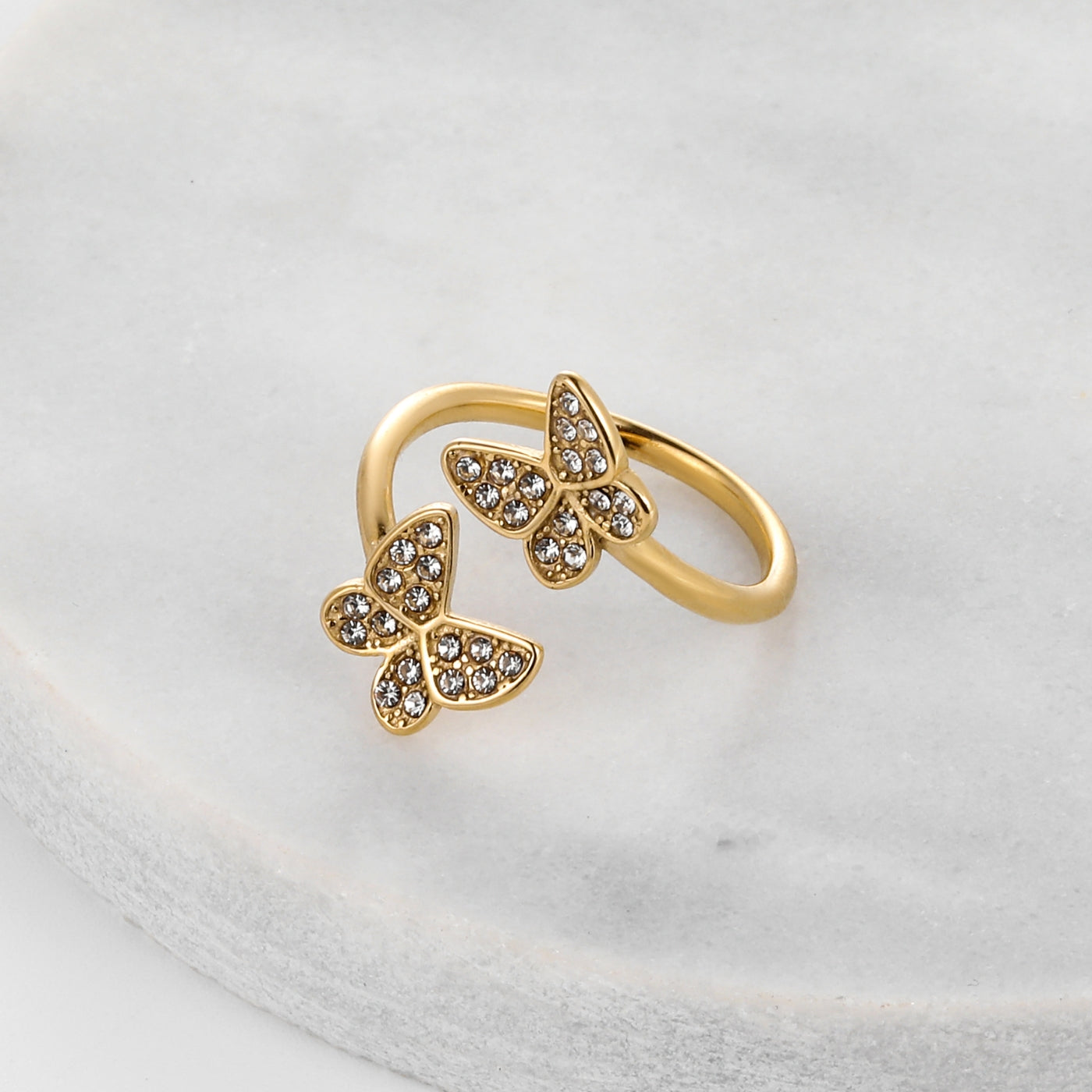 The Open Iced Butterfly Ring is a sculptural beauty that wraps your finger in elegance.